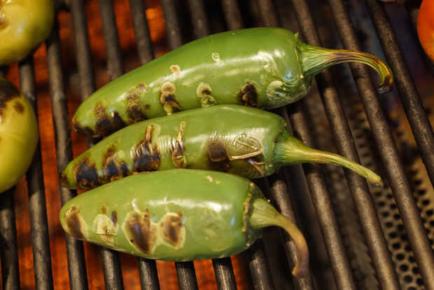 ideal para una cena festiva, esta instructable le mostrará cómo hacer dos clases de salsa, roja (rojo) y verde (verde).Se necesita:Tomate SaladetTomatillosPimientos jalapeñosCilantroPimientosApioCebolla blancaCebolla rojaCalLimónPimienta de CayenaCom