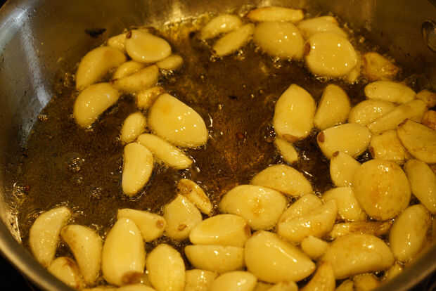 A continuación, poner varios dientes de ajo y unos jalapeños. Usted puede ponerlos en su totalidad la batidora hará la parte más difícil. Ponemos en 4-5 dientes de ajo en esta mezcla y jalapeños 3-4.