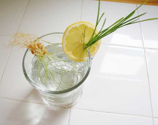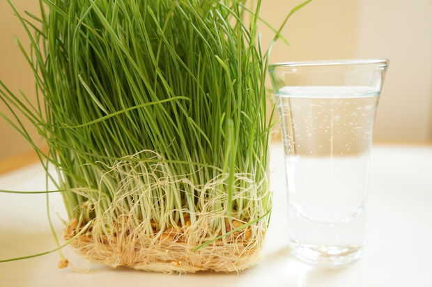Añadir agua a un vaso y pasto de trigo como se muestra.