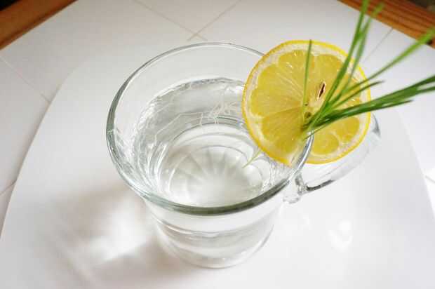 Vierta agua del grifo en un vaso y añadir un poco de jugo de limón.