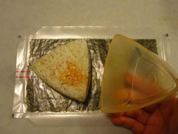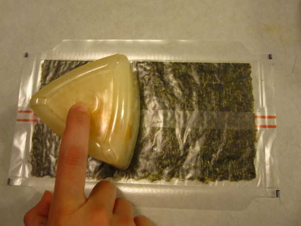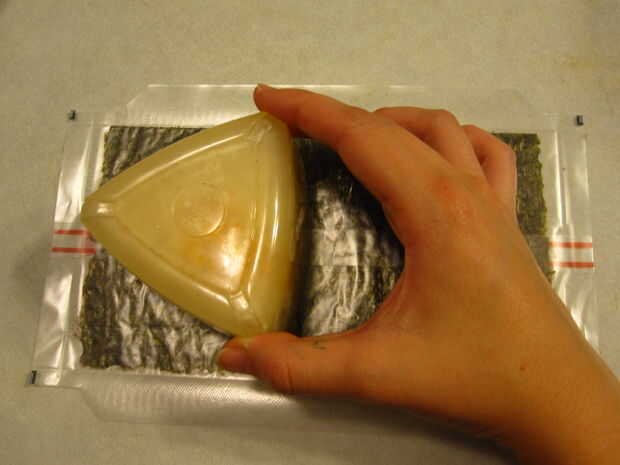 Punta: Coloque el arroz en forma de triángulo alrededor de 1/4 de pulgada desde el final de la mejor forma