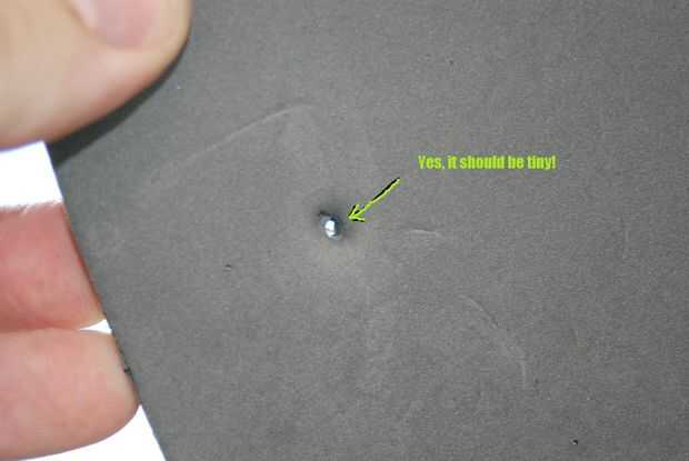 Oh sí, perforar este agujero a través de la marca que usted hizo antes, que es aproximadamente 1/2-1" del borde de la alfombra!