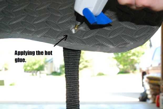 Básicamente, el objetivo de este paso es para cubrir los remaches en una capa de pegamento caliente para que no rayar cosas, sin embargo, puesto que la sandalias son principalmente para uso al aire libre, esto no siempre va a ser un problema.