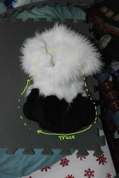 Consigue un lápiz, tomar cada footpaw y traza la forma sobre la estera antifatiga. Deja sobre 12-34 de una pulgada de espacio alrededor de la pata de pie para el trabajo. SIEMPRE se puede recortar hacia abajo, pero usted no puede ajustar hacia arriba!