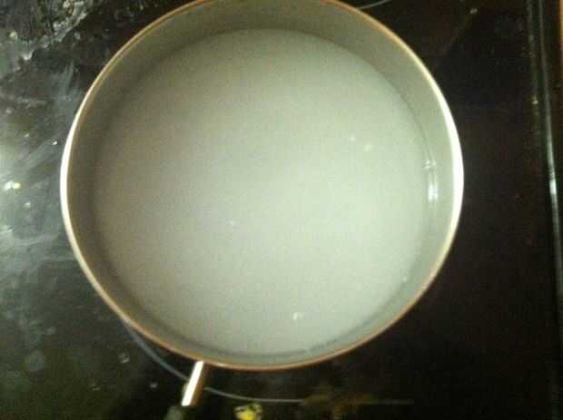 Añadir 2/3 de taza de bicarbonato de sodio a un recipiente suficientemente grande para contener diez tazas de agua. Agregue 10 tazas de agua. Revuelva hasta que se disuelva. Caliéntalo a fuego medio alto en la estufa. Llevar la mezcla a ebullición.