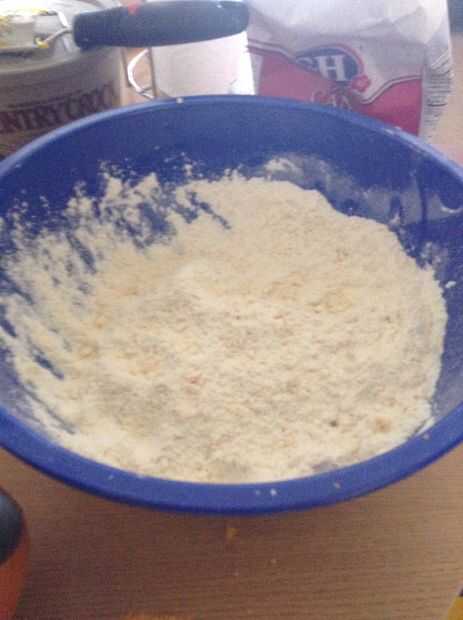 Consejo: Congelar y usar un rallador para rallar la mantequilla, por lo que es más fácil mezclar; mantequilla congelada es mucho más fácil de manejar y no derretirse como mantequilla temperatura ambiente.