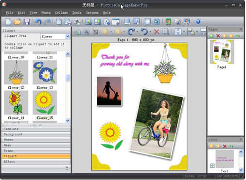 Abra el panel de imágenes prediseñadas. Puedes ver la lista de Cliparts en la parte izquierda de la ventana de Picture Collage Maker. Haga doble clic en un gráfico para agregar al proyecto actual. Hay una variedad de imágenes para que usted pueda tomar decisiones.