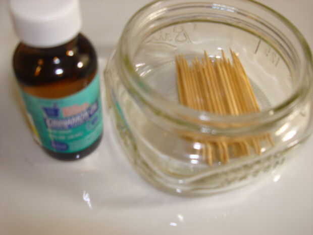 • Vierta una cantidad muy pequeña de aceite con sabor en el fondo de un tarro de cristal.