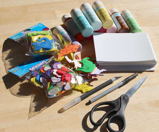 aquí es un proyecto fácil y rápido para hacer sellos de espuma con un apoyo pegajoso. Puede utilizar una almohadilla de tinta regular para estampar - o puede utilizar alguna pintura acrílica. Los sellos se pueden utilizar en papel o en tela.Paso 1: M
