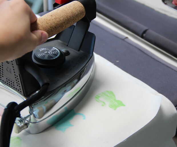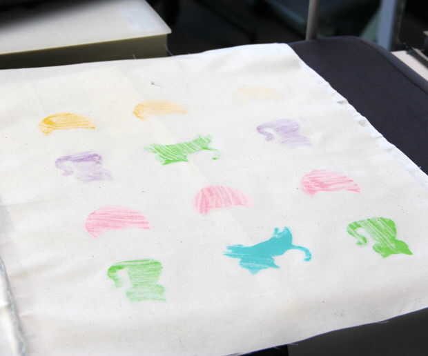 Yo había establecido un pedazo de muselina en la tabla antes de que puse a la tela impresa en la parte superior.
