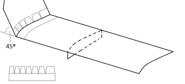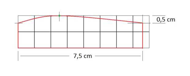 Ahora tome 2 rectángulos más pequeños, en sus fondos dibuje la misma línea pero 2 veces inferior (0,25 cm). Ver segunda foto cómo hacer eso, que como en estabilizadores corte alguna forma en él.