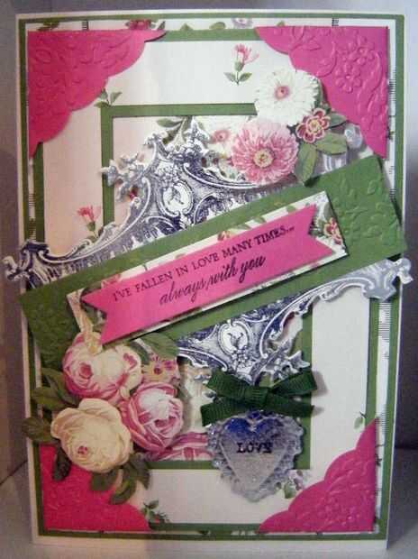 Esta demostración muestra cómo hacer una hermosa tarjeta de amor con productos de la gama de Anna Griffin. Os muestro los pasos que he tomado para crear la tarjeta.Paso 1: Los elementos utilizadostarjeta en blanco de 7x5inch base1 capa de carpeta de