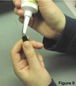 Está casi terminado. En cada extremo del lugar de tubería de encogimiento de calor, una pequeña cantidad de sellador de silicon transparente, ver figura 9. Permita que el sellador se seque según las instrucciones, generalmente alrededor de veinticuatro horas.