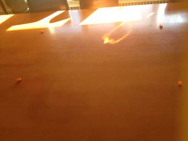 Finalmente, coloque los dos pedazos de plástico restantes en el otro lado del triángulo. Colocarlos en el centro de la línea imaginaria.