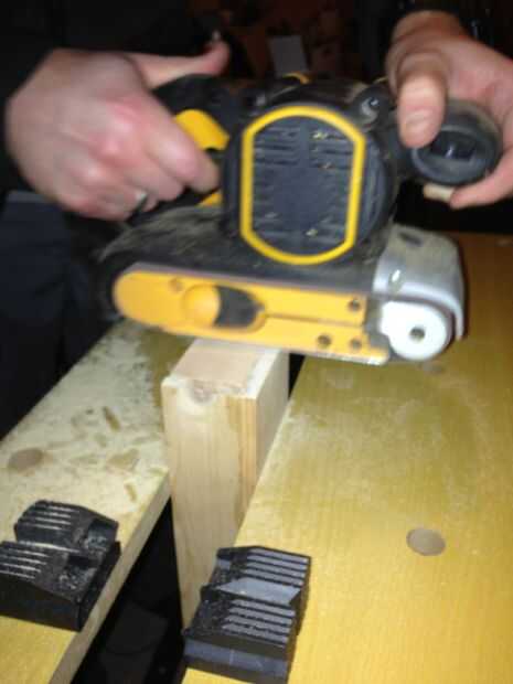 4. Una vez completamente establecido y secas, utilicé una lijadora de banda (con papel grueso) para redondear las esquinas y aplanar los extremos y parte superior.
