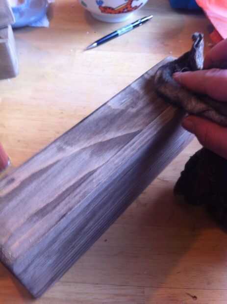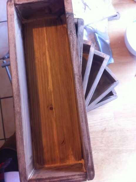 1. Utilizar el colorante/tinte madera para lograr la apariencia deseada de la caja. Simplemente se utiliza un trapo para ir una vez en el exterior y dentro de la caja.