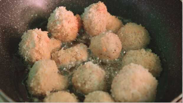 Freír las setas en med-bajo calor para asegurar que no se quemen las migas de pan panko.