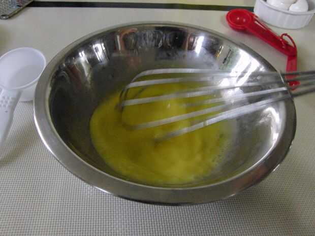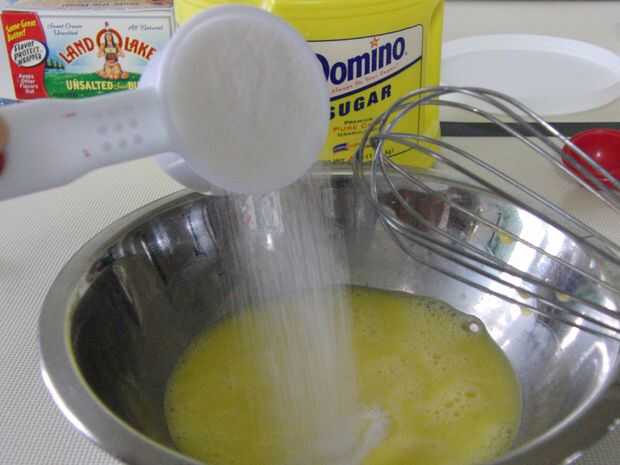 En un tamaño mediano metal bowl, batir los 3 huevos, el azúcar, el jugo de limón y cáscara hasta combinar bien. Empezar a configurar para el siguiente paso, poniendo agua en una cacerola de tamaño mediana a fuego lento. Asegúrese de que la olla es suficientemente grande para contener el recipiente.