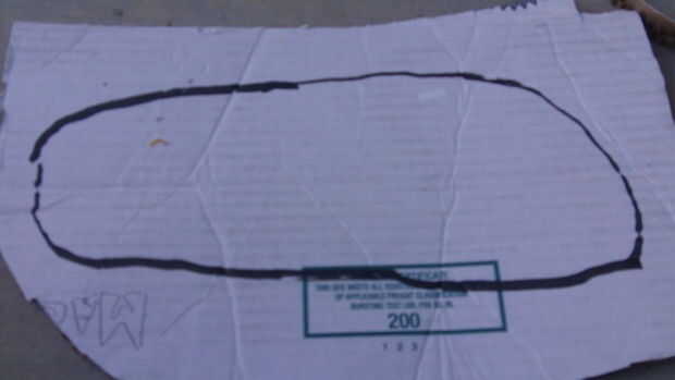 Para este paso simplemente hará un contorno áspero de su pie. hacer un poco más grande que su pie. Es mejor hacer demasiado que demasiado poco. Cuando trazan, asegúrese de que las líneas en el cartón corrugado son paralelas a la longitud de su pie. Esto evitará que el cartón de flexión al caminar.