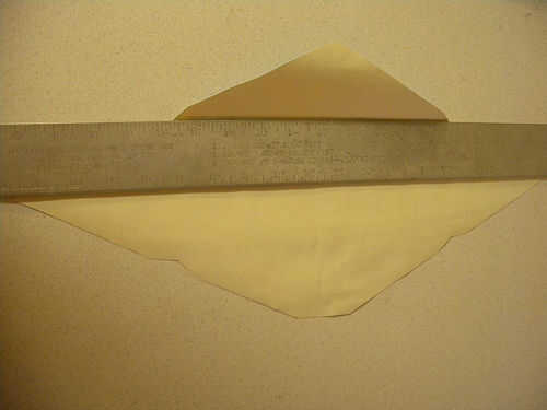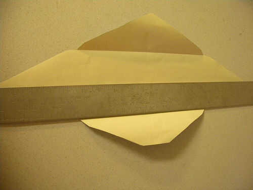 Utilizando las ranuras en la envoltura original como patrón se puede ver donde se debe doblar el espacio en blanco.  Descubrí que una buena regla como esta plaza o una regla de arte que es al revés por el trabajo bien.