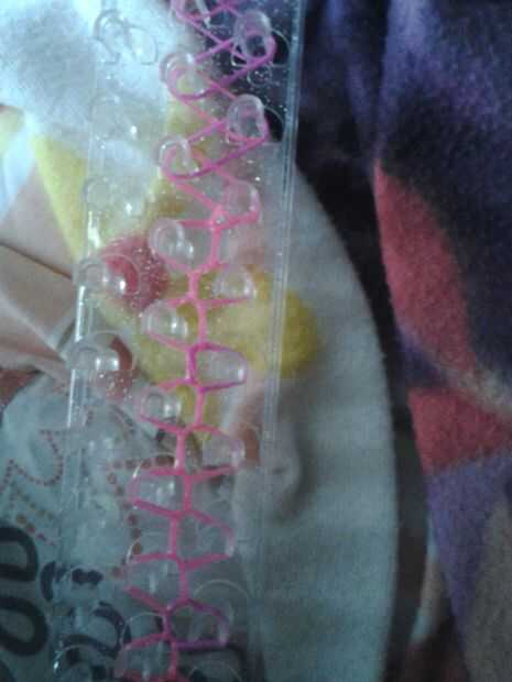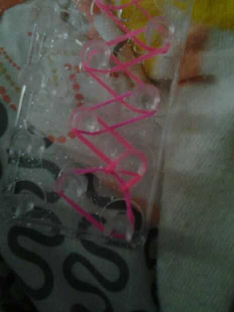 creo que esto es un braclet muy fácil para hacer. Espero que disfruten este INSTRUCTABLE. :)Paso 1: Colocación de los elásticos Primero escoger tres colores. Iniciar en la clavija central de su telar y salen a ambos lados en su telar. (Foto 1)Ahora v