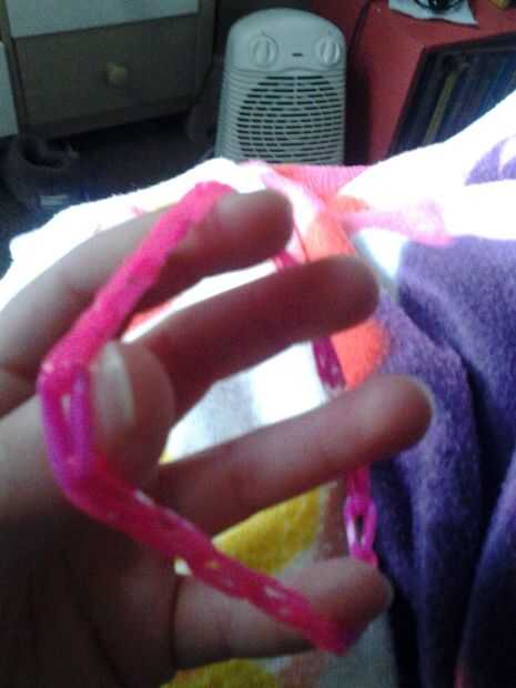 Paso 1: El comienzo Primero tome dos elásticos y girar alrededor de tu dedoPaso 2: Sobre los dedos Luego tomar el fondo elástico y ponerlo sobre su dedoPaso 3: agregar Seguir añadiendo un un repetición paso 2Paso 4: El final Cuando termine Añadir can