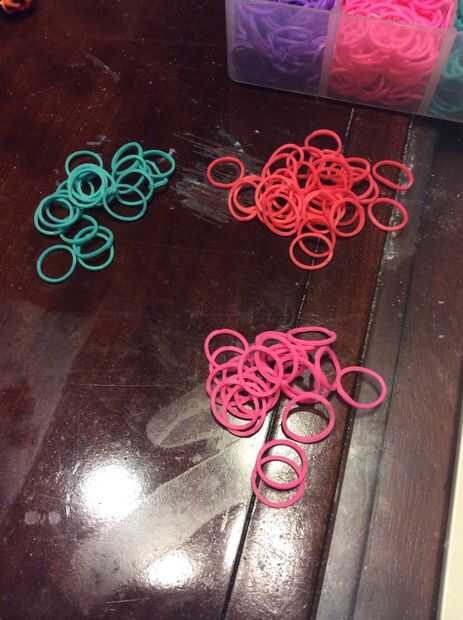 Esta es la pulsera como se verá cuando esté terminado. Yo recomiendo usar 3 colores diferentes para esta pulsera. Antes de poner las bandas en el paso siguiente Asegúrese de que doble todas las bandas, si crees que me refiero a hacer una banda de la