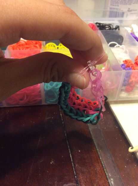 espero que te diviertas.Paso 1: Paso 1. Primera ' el telar y el zigzag de bandas.Paso 2: Paso 2. Luego ' seguir haciendo eso hasta que usted piensa que tiene la pulsera de su tamaño.Paso 3: Paso 3. Siguiente ' tomar su anzuelo y voltee el telar.Paso