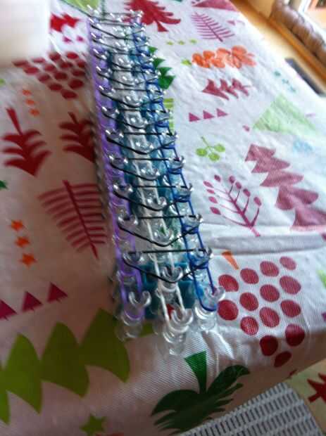 cosas que usted necesita:s-clipganchotelarbandas de gomaPaso 1: a partir Puso sus bandas en una posición de zig zag como en el cuadro hasta llegar al final. Utilicé color de rosa ya que tengo muchos.Paso 2: engancha El telar alrededor del tirón por l