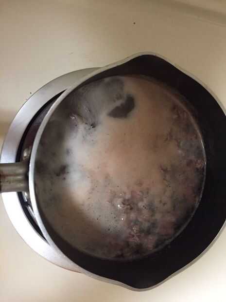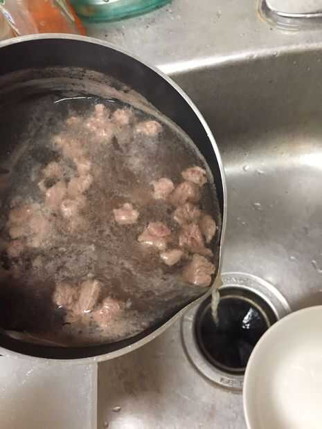 6. Añadir carne en la cacerola cuando el agua está hirviendo