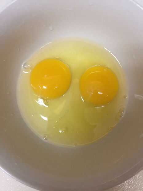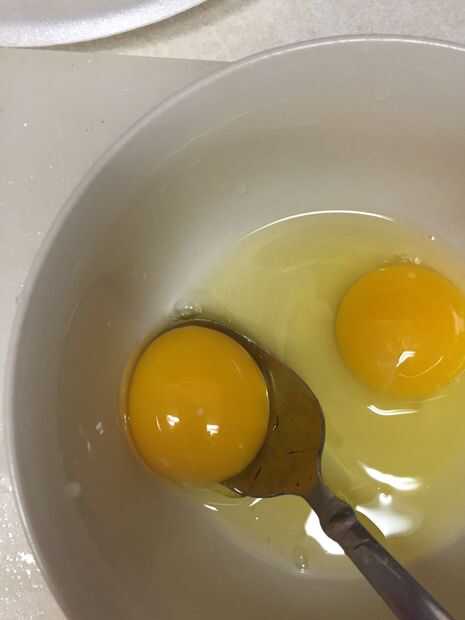 1. romper dos huevos en el recipiente. Evitar caer en el vaso la cáscara de huevo.