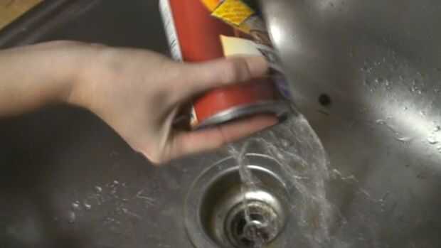 Abierto puede de frijoles negros, dejando la tapa apenas puesta, como una pequeña bisagra. Mantiene la tapa cerrada con el dedo índice, punta puede boca abajo sobre el fregadero permitiendo que el líquido sea absorbido. Después de que el líquido se drena principalmente, abra la tapa y agregue agua hasta que la lata está llena. Cierre la tapa y agite suavemente. Drenar el líquido como antes. Relleno puede con agua y repita este proceso hasta que el agua vertido hacia fuera sobre todo claro.