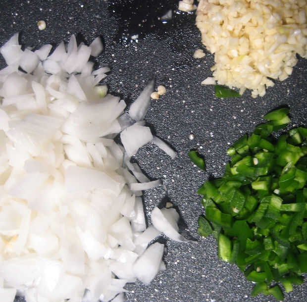 Cortar las tapas de los jalapeños y luego cortarlas por la mitad longitudinalmente y retirar la mayor parte de las membranas y semillas. Dejé un poco - más salir, el más picante será. Corte a un dado pequeño.