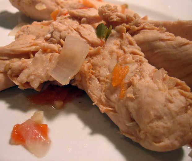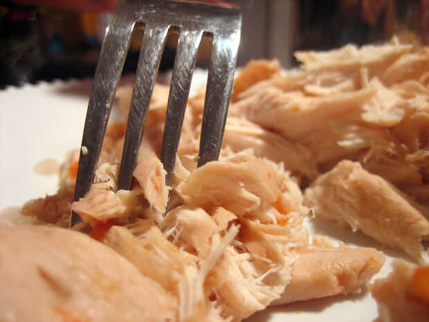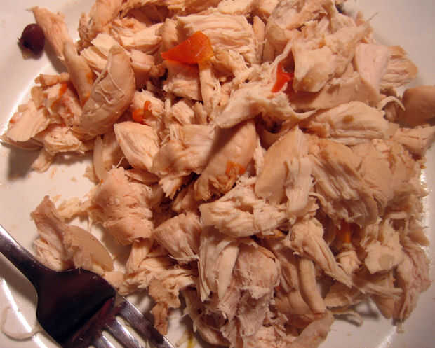 Ahora, salir de un tenedor. Se usa para desmenuzar el pollo en trozos pequeños y luego devolverla a la olla para recalentar.