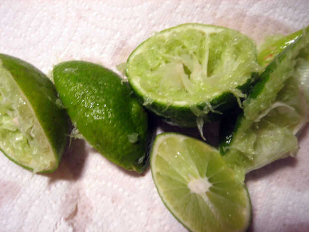 Rollo de las cales en su palma y cortarlas por la mitad. Jugo directamente en la olla y revuelva.