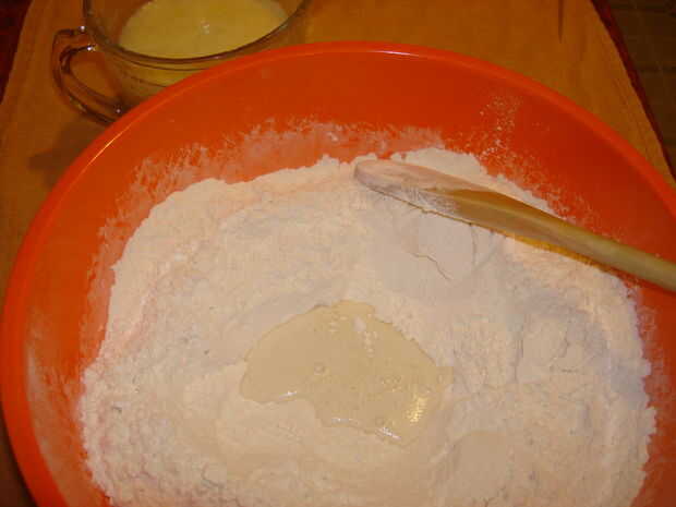 • Añadir lentamente a la harina y la sal.