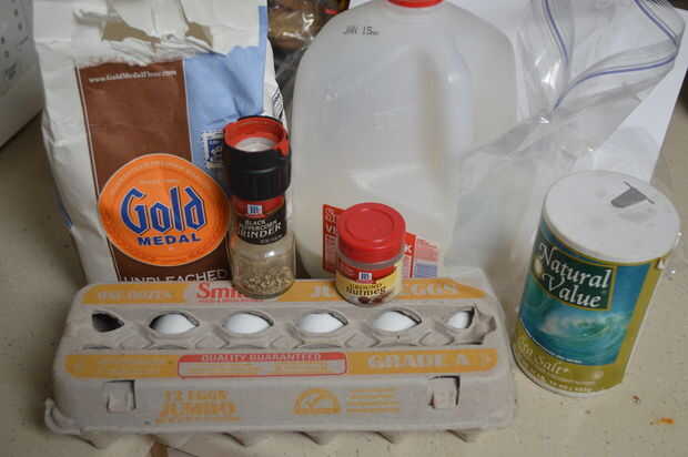 1 taza de harina (cualquier tipo debería funcionar, quizás deberías probar una fantasia, yo sólo uso harina blanca)
