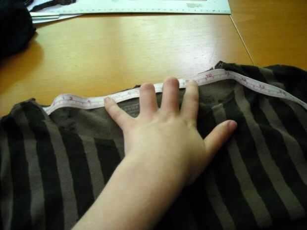 Gire la camisa de dentro hacia fuera y corte el collar. Luego se mide la circunferencia del collar-agujero nuevo