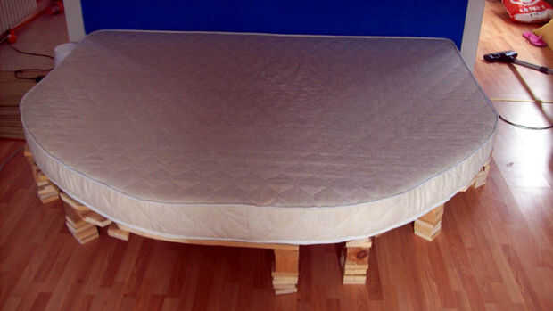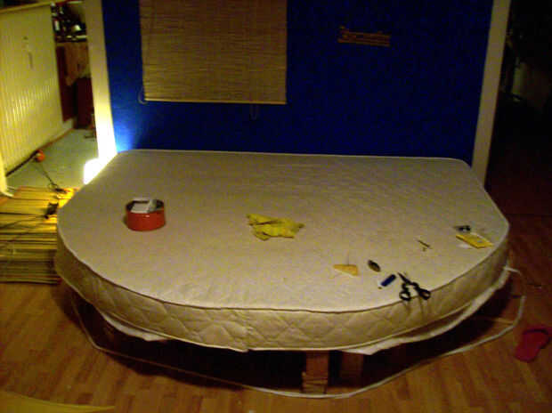 En todo momento Asegúrese de que el lado y medianas partes de la funda son rectas y bastante apretada. Si hay demasiada tela en los bordes, recortarlo o doblar (hacia la espuma!).