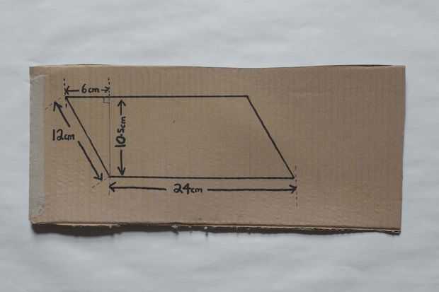 Con su regla, marcar la forma de paralelogramo en su cartón y córtelo hacia fuera como se muestra.