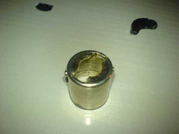 La tapa está hecha de metal que se puede cortar fácilmente, para que pueda utilizar el cortador de alambre; simplemente seguir las directrices y las dos "alas" dentro de la tapa de la curva. Como he dicho antes, utilizar un archivo si es necesario.