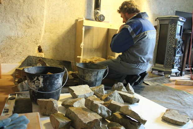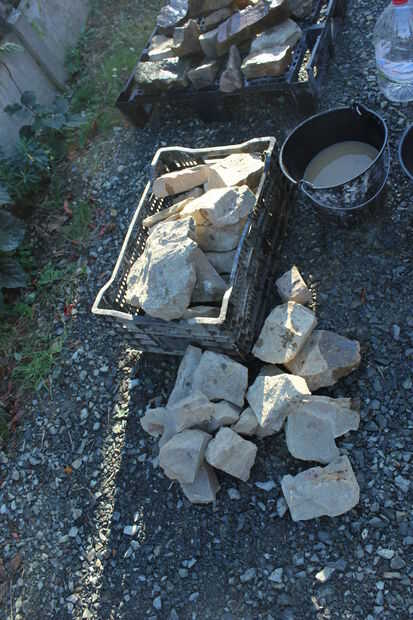 El siguiente paso fue reunir suficientes piedras grandes bien formados y también piedras más pequeñas para llenado. Estos fueron luego lavar y secar.