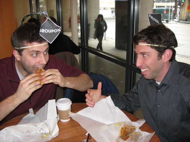 Usar el G.I.B. en su cabeza cada vez que se Grouponing (def: "el acto de redimir un Groupon"). Por tradición, si ves otro Grouponer, los dos se deben: dejar lo que estás haciendo; toque de balizas; hacer contacto visual ininterrumpido durante 3 minutos; silenciosamente, intercambiar números de seguro social; y por último, hablar de deportes. Qué sucede después de usted es.
