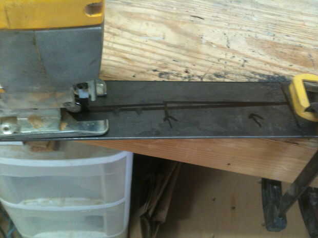 Hacer el contorno de su forma de lámina sobre el acero y empieza jugando! Usted quiere asegurarse de que el acero se asegura correctamente o simplemente saltará alrededor en usted y corte será un dolor. Y por favor, use gafas de seguridad!