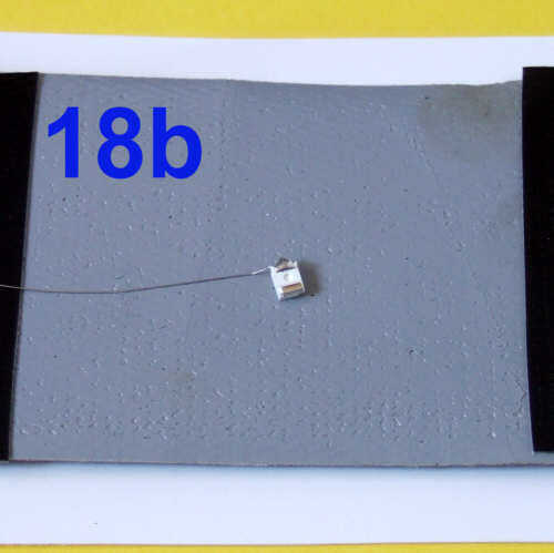 Ver pic18b para una ayuda de las manos jig que solía sostener el LEDs de montaje superficial y fino alambre mientras se suelda. Se compone de lado pegajoso cinta gorila grabado sobre un trozo de cartón. Previamente había usado tac azul para esto, pero funciona igual de bien.