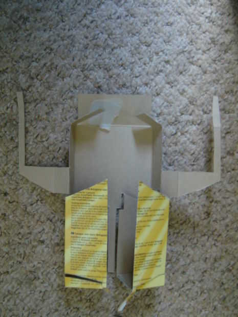 Este es el paso más importante. Corte la caja equivocada puede dar mucho de ejercicio cerebral más tarde. Hay varias maneras de cortar un cuadro para la fabricación de un transformador. Este es uno de ellos. Vea la foto. Primero corté la parte superior de manera que dos esquinas fueron totalmente cortadas de la caja para formar los brazos.