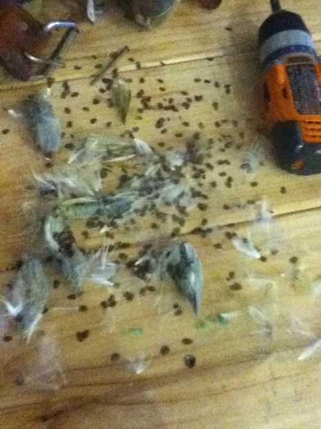 Debe ser capaces de simplemente quite con los dedos, luego tírelos o planta, se trata de la semilla y lo blanco es lo que ayuda a dispersa las semillas.