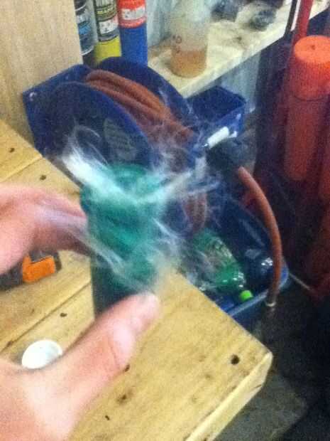 Cram de la pelusa de algodoncillo en el recipiente y vuelva a colocar la tapa. Podría etiquete el dispositivo, pintura o cinta de la tapa hacia abajo para asegurarse de que no salen.