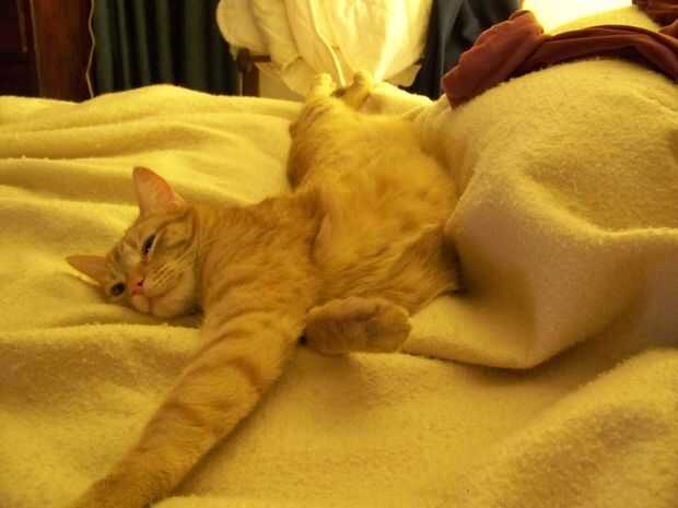 Si su pequeño catzilla repente vuelca en su espalda y se estira en forma de media luna, frotar el vientre, bajo su frente y las patas traseras y especialmente en su parte inferior del estómago donde la mayor parte de su pelo se vuelve blanco.
