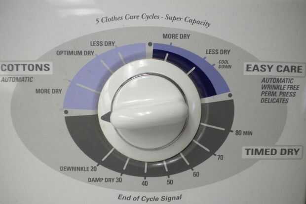 Ahora que tienes los artículos apropiados de la ropa en la secadora, la rejilla de pelusa limpiarla y las hojas del secador incluidas, es tiempo de ajuste el disco y comenzar el proceso de secado final. Como se ve en la figura 4, varias opciones están disponibles para que usted elija. Cada configuración es específica para qué tipo de ropa se están secando y los diferentes ajustes de producir diferentes cantidades de ciclos de calor y tiempo. Seco 60 minutos cronometrado es el escenario más común para seleccionar para una carga de ropa normal.